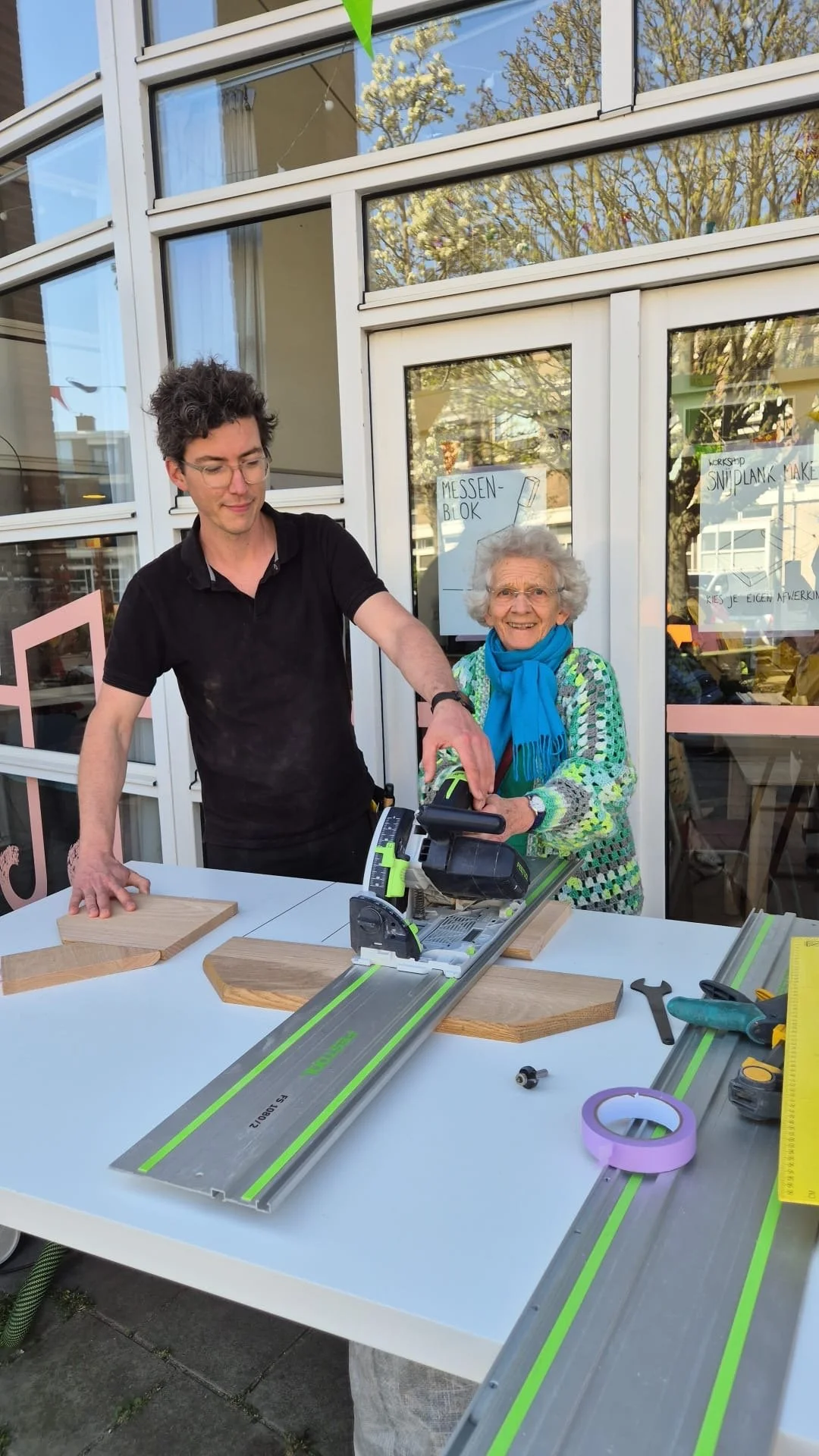 Er worden doe-het-zelf-workshops georganiseerd. Je kunt je meubels pimpen of een snijplank maken. Je hoeft niet naar de winkel, je kunt het eigenlijk allemaal zelf maken.